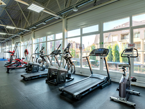 - настольный теннис, русский бильярд, спортивный зал (площадь зала 450 кв. м, оборудован борцовским рингом и универсальным ковром для различных видов единоборств, оснащен профессиональными тренажерами: кардиозона и зона тренажерного зала), теннисный корт, футбольное поле. Бесплатно: аквааэробика