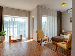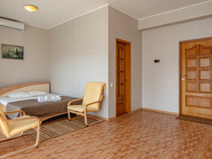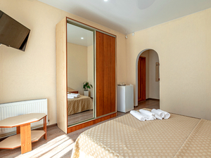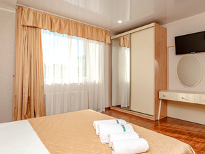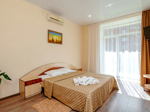 Сервис: Уборка номера ежедневно, смена белья - раз в 3 дня, смена полотенец - раз в 3 дня2-местный 1-комнатный стандарт (макс. 2+1 чел., 17-23 кв. м, телевизор, кондиционер, умывальник, холодильник, пляжное полотенце, балкон, сейф, 1-спальные/ 2-спальная кровать, прикроватные тумбочки, журнальный столик, шкаф-купе, душевая кабина, туалет, отопление, сушилка для белья). Доп. место - еврораскладушка, предоставляется без ограничений по возрасту.4-местный 2-комнатный стандарт (макс. 4+1 чел., 44 кв. м, телевизор, кондиционер, умывальник, фен, халаты, тапочки, холодильник, туалетные принадлежности, балкон, сейф, 2-спальная кровать, кресло-кровать, прикроватные тумбочки, журнальный столик, шкаф-купе, душевая кабина, санузел, полотенца для бассейна, отопление, сушилка для белья, панорамное окно, полотенца, угловой диван). Доп. место - еврораскладушка, предоставляется без ограничений по возрасту.4-местный 2-комнатный семейный эконом (макс. 4 чел., 44 кв. м, телевизор, кондиционер, холодильник, балкон, 1-спальные кровати, прикроватные тумбочки, журнальный столик, шкаф-купе, раковина, душевая кабина, санузел, сушилка для белья, полотенца, угловой диван).2-местный 1-комнатный полулюкс (макс. 2+1 чел., 26 кв. м, телевизор, кондиционер, умывальник, фен, тапочки, холодильник, туалетные принадлежности, балкон, сейф, 2-спальная кровать, прикроватные тумбочки, шкаф-купе, душевая кабина, санузел, полотенца для бассейна, отопление, сушилка для белья, панорамное окно, полотенца). Доп. место - кресло-кровать, предоставляется без ограничений по возрасту.