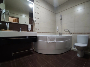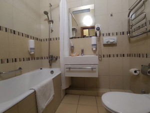 1-местный стандарт (макс. 1 чел., 12 кв. м, телевизор, душ, фен, балкон, электрочайник, 1,5-спальная кровать, кресло, мини-холодильник, санузел, номер расположен на 4 этаже).2-местный стандарт DBL (макс. 2+1 чел., 24 кв. м, телевизор, сплит-система, фен, халаты, тапочки, холодильник, туалетные принадлежности, балкон (в части номеров), сейф, шкаф/гардероб, 2-спальная кровать, чайная станция). Доп. место - еврораскладушка.2-местный стандарт TWIN (макс. 2+1 чел., 24 кв. м, телевизор, сплит-система, фен, халаты, тапочки, холодильник, туалетные принадлежности, балкон (в части номеров), сейф, шкаф/гардероб, 1-спальные кровати, чайная станция). Доп. место - еврораскладушка.2-местный джуниор сюит (макс. 2+2 чел., 50 кв. м, телевизор, сплит-система, ванна, фен, халаты, тапочки, мини-бар, сейф, мебель на балконе, 2-спальная кровать, диван, чайная станция, в номере две зоны отдыха). Доп. место - еврораскладушка, может быть установлена без ограничения по возрасту.2-местный 2-комнатный люкс классический (макс. 2+2 чел., 50 кв. м, телевизор, кондиционер, ванна, фен, халаты, тапочки, холодильник, сейф, мебель на балконе, 2-спальная кровать, набор посуды, чайная станция). Доп. место - еврораскладушка, может быть установлена без ограничения по возрасту.2-местный 2-комнатный люкс театральный (макс. 2+2 чел., 76 кв. м, телевизор, сплит-система, ванна, фен, халаты, тапочки, холодильник, туалетные принадлежности, сейф, мягкая мебель, 2-спальные кровати, чайная станция, интерьер номера выполнен в классическом итальянском стиле с присущей ему вычурностью и дороговизной обстановки. В гостиной комнате расположен итальянский мебельный гарнитур – удобный диван и два кресла, журнальный столик для чаепитий. Также здесь есть туалетный столик с уже приготовленным набором различных косметических средств). Доп. место - диван, может быть установлен без ограничения по возрасту.2-местный 2-комнатный люкс семейный (макс. 2+2 чел., 50 кв. м, телевизор, сплит-система, ванна, фен, халаты, тапочки, холодильник, туалетные принадлежности, сейф, мебель на балконе, 2-спальные кровати, диван, набор посуды, туалет, чайная станция). Доп. место - еврораскладушка, может быть установлена без ограничения по возрасту.