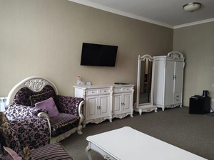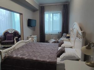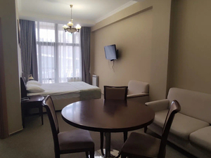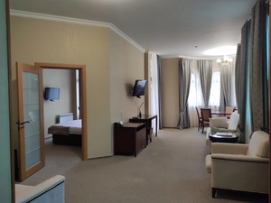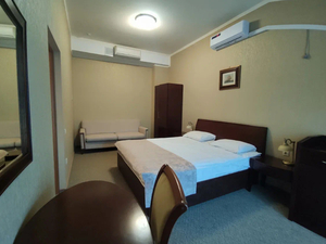Комфортабельные номера оформлены в элегантном европейском стиле. Все номера оборудованы кондиционерами, удобной мебелью, оснащены телевизором, холодильником, мини-баром, сейфом, телефоном, в большинстве номеров балконы с плетеной мебелью.Сервис: Уборка номера ежедневно, смена полотенец - ежедневно, смена белья в апартаментах – ежедневно, в люксах – через день, в стандартах - раз в 4 дня.