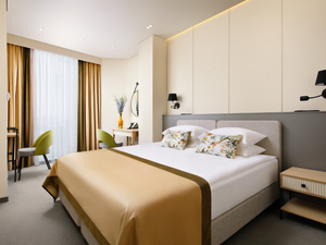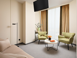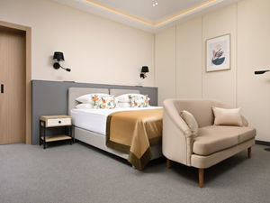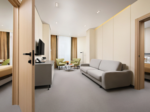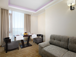 Сервис: Уборка номера ежедневно, смена белья - раз в 3 дня, смена полотенец - по требованию2-местный стандарт (макс. 2+1 чел., 22 кв. м, Wi-Fi бесплатный в номере, ЖК/LCD телевизор, кондиционер, душ, фен, халаты, тапочки, холодильник, банные принадлежности, туалетные принадлежности, электрочайник, сейф, телефон, 1-спальные/ 2-спальная кровать, набор посуды, расположение: 2, 3, 4, 5 этажи; есть возможность установки детской кроватки). Доп. место - еврораскладушка, может быть установлена без ограничения по возрасту.2-местный стандарт плюс (макс. 2+1 чел., 22 кв. м, Wi-Fi бесплатный в номере, ЖК/LCD телевизор, кондиционер, душ, фен, халаты, тапочки, холодильник, банные принадлежности, туалетные принадлежности, электрочайник, сейф, телефон, 1-спальные/ 2-спальная кровать, набор посуды, 2 и 5 этаж; есть возможность установки детской кроватки). Доп. место - еврораскладушка, может быть установлена без ограничения по возрасту.2-местный 2-комнатный семейный (макс. 2+2 чел., 44 кв. м, Wi-Fi бесплатный в номере, кондиционер, душ, биде, фен, халаты, тапочки, банные принадлежности, туалетные принадлежности, электрочайник, мини-бар, сейф, телефон, 1-спальные/ 2-спальная кровать, набор посуды, туалет, панорамное окно, 2 телевизора, 2 санузла, расположение: 6, 7, 8 этажи). Доп. место - раскладной диван, предоставляется без ограничения по возрасту.2-местный 2-комнатный делюкс (макс. 2+2 чел., 44 кв. м, Wi-Fi бесплатный в номере, кондиционер, душ/ванна, биде, фен, халаты, тапочки, холодильник, банные принадлежности, туалетные принадлежности, электрочайник, сейф, телефон, утюг, гладильная доска, 2-спальная кровать, набор посуды, санузел, сушилка для белья, панорамное окно, 2 телевизора, 2 санузла, номера на 8 этаже; есть возможность установки детской кроватки). Доп. место - диван-кровать, может быть установлен без ограничения по возрасту.2-местный джуниор сьют (макс. 2+1 чел., 41 кв. м, Wi-Fi бесплатный в номере, ЖК/LCD телевизор, кондиционер, душ, биде, фен, халаты, тапочки, холодильник, банные принадлежности, туалетные принадлежности, электрочайник, сейф, телефон, 1-спальные/ 2-спальная кровать, набор посуды, 6, 7, 8 этажи). Доп. место - еврораскладушка, может быть установлена без ограничения по возрасту.2-местная 1-комнатная студия (макс. 2+1 чел., 41 кв. м, Wi-Fi бесплатный в номере, ЖК/LCD телевизор, кондиционер, душ, биде, фен, халаты, тапочки, холодильник, банные принадлежности, туалетные принадлежности, электрочайник, сейф, телефон, 2-спальная кровать, набор посуды, санузел). Доп. место - еврораскладушка, может быть установлена без ограничения по возрасту.2-местный 2-комнатный люкс (макс. 2+2 чел., 70 кв. м, Wi-Fi бесплатный в номере, ЖК/LCD телевизор, кондиционер, душ, ванна, биде, фен, халаты, тапочки, туалетные принадлежности, балкон, электрочайник, мини-бар, сейф, телефон, мягкая мебель, 2-спальная кровать, набор посуды, санузел). Доп. место - диван-кровать, при размещении четырех человек в номере третий и четвертый туристы размещаются на раскладном диване.2-местный 3-комнатный сьют (макс. 2+2 чел., 92 кв. м, Wi-Fi бесплатный в номере, ЖК/LCD телевизор, кондиционер, душ, ванна, биде, фен, халаты, тапочки, банные принадлежности, туалетные принадлежности, электрочайник, мини-бар, сейф, телефон, мягкая мебель, рабочий кабинет, 2-спальная кровать, набор посуды, санузел). Доп. место - диван-кровать, при размещении четырех человек в номере третий и четвертый туристы размещаются на раск