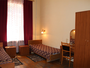 1-местный эконом (макс. 1 чел., умывальник, 1-спальная кровать, сушилка раскладная (для белья), на этаже душ и туалет, посуда (графин, стаканы)).2-местный эконом (макс. 2 чел., умывальник, 1-спальные кровати, на этаже душ и туалет).Корпус №3Сервис: Уборка номера ежедневно, смена белья - раз в 5 дней, смена полотенец - раз в 3 дня