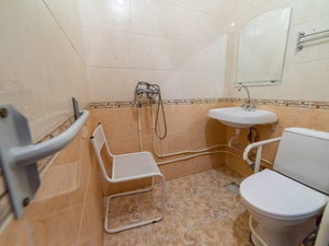 полностью оснащен по программе "Доступная среда" для свободного перемещения лиц, находящихся на лечении в специализированном отделении (спинальном) и всех передвигающихся с помощью инвалидной коляски и вспомогательных предметов.