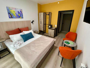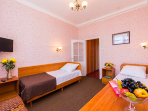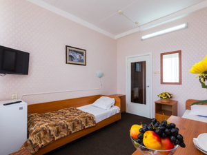 1-местный 1 категории (макс. 1+1 чел., 16 кв. м, телевизор, кондиционер, душ, фен, холодильник, балкон, электрочайник, 1-спальная кровать, санузел). Доп. место - кресло-кровать, может быть установлена без ограничения по возрасту .1-местный 2 категории (макс. 1+1 чел., 16 кв. м, телевизор, душ, холодильник, балкон, электрочайник, 1-спальная кровать, санузел). Доп. место - раскладная кровать, может быть установлена без ограничения по возрасту .2-местный 1 категории (макс. 2+1 чел., 16 кв. м, телевизор, кондиционер, душ, фен, холодильник, балкон, электрочайник, 1-спальные кровати, санузел, Номера расположены на 2-7 этажах. ). Доп. место - раскладная кровать, предоставляется только для детей до 14 лет.2-местный 1 категории улучшенный (макс. 2+1 чел., 18 кв. м, телевизор, кондиционер, душ, фен, холодильник, электрочайник, 1-спальные кровати, санузел, Расположены на 1 этаже ). Доп. место - раскладная кровать, предоставляется только для детей до 14 лет.2-местный 2 категории (макс. 2+1 чел., 16 кв. м, телевизор, душ, холодильник, балкон, электрочайник, 1-спальные кровати, санузел). Доп. место - раскладная кровать, предоставляется только для детей до 14 лет.2-местный 2-комнатный 1 категории (макс. 2+2 чел., 32 кв. м, телевизор, кондиционер, ванна, фен, холодильник, балкон, электрочайник, 1-спальные/ 2-спальная кровать, диван, санузел). Доп. место - раскладной диван, при размещении 4 человек третий и четвертый туристы размещаются на 2-спальном диване.2-местный 2-комнатный 1 категории улучшенный (макс. 2+2 чел., 32 кв. м, телевизор, кондиционер, ванна, фен, холодильник, балкон, электрочайник, 1-спальные/ 2-спальная кровать, диван, набор посуды, санузел). Доп. место - раскладная кровать, при размещении 4 человек третий и четвертый туристы размещаются на 2-спальном диване.Корпус №1