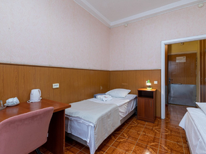 1-местный 1 категории улучшенный (макс. 1+1 чел., 16 кв. м, кондиционер, душ, фен, холодильник, балкон, электрочайник, 1-спальная кровать, санузел). может быть установлено без ограничения по возрасту.2-местный 2 категории (макс. 2 чел., 16 кв. м, телевизор, душ, холодильник, балкон, электрочайник, 1-спальные кровати, санузел).Корпус №1 Спинальное отделение (номера бронируются по индивидуальному запросу)Сервис: Уборка номера ежедневно, смена белья - раз в неделю
