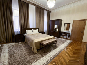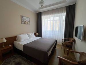 2-местный 2-комнатный люкс, корп. В (макс. 2+2 чел., 38 кв. м, телевизор, кондиционер, ванна, фен, холодильник, электрочайник, сейф, 2-спальная кровать, диван, кресло, санузел). Доп. место - диван, при размещении 4 человек третий и четвертый туристы размещаются на 2-спальном диване.2-местный 2-комнатный джуниор сьют, корп.В (макс. 2+2 чел., 38 кв. м, телевизор, ванна, фен, холодильник, электрочайник, сейф, телефон, шкаф/гардероб, 2-спальная кровать, диван, кресло, санузел, гостиный уголок). Доп. место - диван-кровать.2-местный 3-комнатный люкс, корп.В (макс. 2+2 чел., 70 кв. м, телевизор, ванна, фен, холодильник, электрочайник, сейф, телефон, шкаф/гардероб, 1-спальные/ 2-спальная кровать, санузел). Доп. место - раскладной диван.Корпус №7Сервис: Уборка номера ежедневно, смена белья - раз в неделю, на всех этажах гладильные доски.