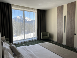 Современные виллы и номера на склоне горы в окружении хвойного леса, ресторан авторской кухни и бар, прямой доступ к горнолыжной трассе Восток-1 (ski-in/ski-out), пешая доступность до подъемников и центра курорта, SPA-программы в роскошном хаммаме и бане, открытый подогреваемый бассейн и джакузи, организация туров на снегоходах, джипах, квадроциклах, вездеходах, ухоженная территория, детская площадка, барбекю зоны, высокий уровень сервиса и заботливая команда отеля.