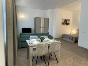 Авторский дизайн - проект апартаментов выполнен в спокойных тонах, просторные комнаты с высокими потолками добавляют особой атмосферы уюта.