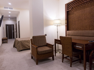 - 6 номеров класса "Люкс", в которых все до мелочей предусмотрено для комфортного отдыха и плодотворной работы. Такой просторный двухкомнатный номер рассчитан на одного двух гостей и подойдет как семейной паре, так и бизнесмену, пребывающему в деловой поездке.
