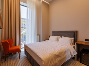 2-местный 2-комнатный люкс с балконом (макс. 2+1 чел., 44 кв. м, Wi-Fi, телевизор, сплит-система, душ, фен, балкон (в части номеров), электрочайник, сейф, телефон, 2-спальная кровать, кресло, прикроватные тумбочки, шкаф, зеркало, вешалка для одежды, мини-холодильник, туалет, чайный набор, полотенца, диван-кровать). Доп. место - диван-кровать/кровати.