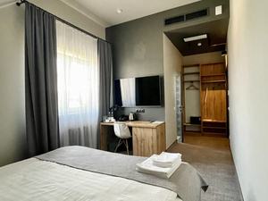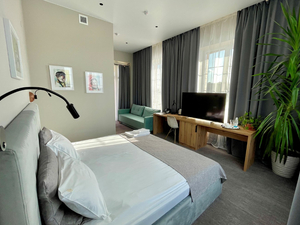 Сервис: Уборка номера ежедневно, смена белья - раз в 3 дня, смена полотенец - раз в 3 дня2-местный 1-комнатный стандарт (макс. 2 чел., 18 кв. м, Wi-Fi, телевизор, кондиционер, душ, умывальник, фен, тапочки, холодильник, туалетные принадлежности, сейф, телефон, 2-спальная кровать, чайник, туалет, чайный набор, система климат-контроля, вид во двор).2-местный 1-комнатный полулюкс с доп. местом (макс. 2+1 чел., 27 кв. м, Wi-Fi, телевизор, кондиционер, душ/ванна, умывальник, фен, тапочки, холодильник, туалетные принадлежности, сейф, телефон, утюг, 2-спальная кровать, чайник, туалет, чайный набор, система климат-контроля, вид во двор). Доп. место - кресло-раскладушка, может быть установлено без ограничения по возрасту.2-местный 1-комнатный полулюкс с ванной (макс. 2+2 чел., 30 кв. м, Wi-Fi, телевизор, кондиционер, душ/ванна, умывальник, фен, тапочки, холодильник, туалетные принадлежности, сейф, телефон, 2-спальная кровать, чайник, туалет, чайный набор, система климат-контроля, вид на сад). Доп. место - раскладной диван, может быть установлен без ограничения по возрасту.2-местный 1-комнатный люкс (макс. 2+2 чел., 41 кв. м, Wi-Fi, телевизор, кондиционер, душ/ванна, умывальник, фен, тапочки, холодильник, туалетные принадлежности, сейф, телефон, утюг, 2-спальная кровать, чайник, туалет, чайный набор, система климат-контроля, вид на озеро). Доп. место - раскладной диван, может быть установлен без ограничения по возрасту.