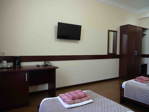 2-местный стандарт DBL/TWIN (макс. 2+1 чел., 25 кв. м, телевизор, кондиционер, душ, фен, тапочки, холодильник, 1-спальные/ 2-спальная кровать, шкаф, зеркало, стол, чайник, чайный набор, полотенца). Доп. место - раскладушка/раскладное кресло, только для детей до 12 лет.