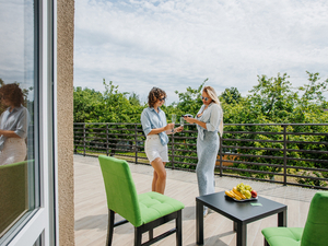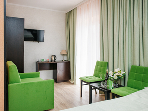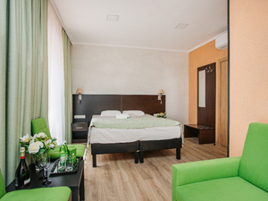 Сервис: Уборка номера ежедневно, смена белья - раз в 3 дня2-местный стандарт (макс. 2+1 чел., 20 кв. м, Wi-Fi, телевизор, кондиционер, душ, фен, халаты, тапочки, холодильник, электрочайник, сейф, телефон, 1-спальные/ 2-спальная кровать, туалет). Доп. место - кресло-кровать, предоставляется без ограничений по возрасту.2-местный стандарт с террасой (макс. 2+1 чел., 22 кв. м, Wi-Fi, телевизор, кондиционер, душ, фен, халаты, тапочки, холодильник, электрочайник, сейф, телефон, 1-спальные/ 2-спальная кровать, туалет). Доп. место - кресло-кровать, предоставляется без ограничений по возрасту.2-местный мансардный (макс. 2 чел., 16 кв. м, Wi-Fi, телевизор, кондиционер, душ, фен, халаты, тапочки, холодильник, электрочайник, сейф, телефон, 1-спальные/ 2-спальная кровать, туалет, мансардное окно).