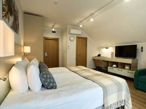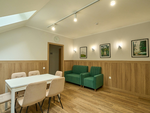- прием туристов ОВЗ только в сопровождении члена семьи, пандусы, широкие дверные проёмы, широкие коридоры, отсутствие высоких порогов, доступность посещения зала питания туристу на инвалидной коляске, помощь с багажом