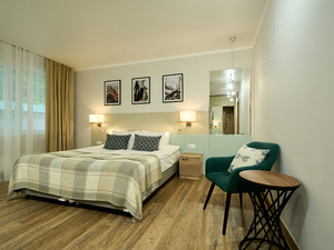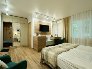 1-местный станд. 1 катег. (макс. 1+1 чел., 16 кв. м, Wi-Fi, LCD телевизор, сплит-система, душ/ванна, фен, тапочки, холодильник, балкон, сейф, телефон, 1,5-спальная кровать, чайный набор, халат, третий и четвертый этажи Спального корпуса; вид на горы и внутреннюю парковую территорию санатория. Утюг, гладильная доска имеются на 1, 2 и 4 этажах Спального корпуса). Доп. место - диван-кровать, предоставляется без ограничения по возрасту.1-местный комфорт 1 катег. (макс. 1+1 чел., 16 кв. м, Wi-Fi, LCD телевизор, сплит-система, душ/ванна, фен, тапочки, холодильник, балкон, сейф, телефон, 2-спальная кровать, чайный набор, халат, первый, третий и четвертый этажи Спального корпуса; южная или западная сторона, вид на горы и внутреннюю парковую территорию санатория. Утюг, гладильная доска имеются на 1, 2 и 4 этажах Спального корпуса). Доп. место - еврораскладушка, предоставляется без ограничения по возрасту.2-местный улучшенный 1 категории (макс. 2+2 чел., 32 кв. м, Wi-Fi, LCD телевизор, душ/ванна, фен, халаты, тапочки, холодильник, балкон, сейф, телефон, 2-спальная кровать, чайный набор, четвертый этаж Спального корпуса; южная сторона, вид на горы и внутреннюю парковую территорию санатория. Утюг, гладильная доска имеются на 4 этаже Спального корпуса). Доп. место - диван-кровать, предоставляется без ограничения по возрасту.2-местный 2-комнатный семейный 1 категории (макс. 2+2 чел., 30 кв. м, Wi-Fi, LCD телевизор, сплит-система, халаты, тапочки, холодильник, терраса, сейф, телефон, 2-спальная кровать, набор посуды, чайный набор, первый и второй этажи Спального корпуса; южная сторона, вид на горы и внутреннюю парковую территорию санатория; межкомнатной двери нет. Утюг, гладильная доска имеются на 1 и 2 этажах Спального корпуса). Доп. место - диван-кровать, предоставляется без ограничения по возрасту.2-местный 2-комнатный люкс (макс. 2+2 чел., 35 кв. м, Wi-Fi, LCD телевизор, сплит-система, фен, тапочки, холодильник, терраса, сейф, телефон, 2-спальная кровать, набор посуды, чайный набор, халат, первый, второй и третий этажи Спального корпуса; южная сторона, вид на горы и внутреннюю парковую территорию санатория; имеется межкомнатная дверь. Утюг, гладильная доска имеются на 1, 2 и 3 этажах Спального корпуса). Доп. место - диван-кровать, предоставляется без ограничения по возрасту.Коттеджи "Вера", "Надежда", "Любовь" и корпус "София"