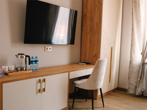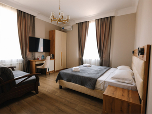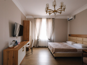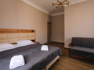 Сервис: Уборка номера ежедневно, смена белья - раз в 3 дня, смена полотенец - раз в 3 дня2-местный стандарт №102 (макс. 2+1 чел., 23 кв. м, Wi-Fi, телевизор, кондиционер, душ, фен, тапочки, холодильник, сейф, 2-спальная кровать, шкаф, стол, полотенца, номер находится на первом этаже; одно маленькое окно выходит в холл второго этажа). Доп. место - кресло-кровать.2-местный стандарт №203 (двуспальная кровать) (макс. 2 чел., 30 кв. м, Wi-Fi, телевизор, кондиционер, душ, фен, тапочки, холодильник, сейф, 2-спальная кровать, шкаф, стол, полотенца, одно окно выходит в коридор).2-местный стандарт №204 (односпальные кровати) (макс. 2 чел., 20 кв. м, Wi-Fi, телевизор, кондиционер, душ, фен, тапочки, холодильник, сейф, 1-спальные кровати, шкаф, стол, полотенца, одно окно выходит в коридор).2-местный стандарт №302 (макс. 2+1 чел., 30 кв. м, Wi-Fi, телевизор, кондиционер, душ, фен, тапочки, холодильник, сейф, 1-спальные/ 2-спальная кровать, шкаф, стол, полотенца, кровати-трансформеры). Доп. место - раскладной диван.2-местный стандарт №401 (макс. 2+1 чел., 30 кв. м, Wi-Fi, телевизор, кондиционер, душ, фен, тапочки, холодильник, сейф, 1-спальные/ 2-спальная кровать, шкаф, стол, полотенца, кровати-трансформеры). Доп. место - раскладной диван.2-местный стандарт №402 (макс. 2+1 чел., 30 кв. м, Wi-Fi, телевизор, кондиционер, душ, фен, тапочки, холодильник, сейф, 1-спальные/ 2-спальная кровать, шкаф, стол, полотенца, кровати-трансформеры). Доп. место - раскладной диван.2-местный стандарт №403 (макс. 2+1 чел., 30 кв. м, Wi-Fi, телевизор, кондиционер, душ, фен, тапочки, холодильник, сейф, 1-спальные/ 2-спальная кровать, шкаф, стол, полотенца, кровати-трансформеры). Доп. место - раскладной диван.2-местный полулюкс №103 (макс. 2+2 чел., 55 кв. м, Wi-Fi, телевизор, кондиционер, душ, фен, тапочки, холодильник, сейф, 2-спальная кровать, шкаф, стол, полотенца, номер находится на первом этаже; два больших окна выходят во двор). Доп. место - раскладной диван.2-местный полулюкс №202 (макс. 2+2 чел., 30 кв. м, Wi-Fi, телевизор, кондиционер, душ, фен, тапочки, холодильник, сейф, 2-спальная кровать, шкаф, стол, полотенца, два больших окна выходят во двор). Доп. место - раскладной диван.2-местный люкс №201 (макс. 2+2 чел., 60 кв. м, Wi-Fi, телевизор, кондиционер, душ, фен, тапочки, холодильник, сейф, 2-спальная кровать, шкаф, стол, полотенца, два больших окна выходят во двор). Доп. место - раскладной диван.2-местный люкс №301 (макс. 2+2 чел., 45 кв. м, Wi-Fi, телевизор, кондиционер, душ, фен, тапочки, холодильник, сейф, 1-спальные/ 2-спальная кровать, шкаф, стол, полотенца, кровати-трансформеры). Доп. место - раскладной диван.3-местный люкс №101 (макс. 3+3 чел., 65 кв. м, Wi-Fi, телевизор, кондиционер, душ, фен, тапочки, холодильник, сейф, 2-спальная кровать, шкаф, стол, полотенца, номер находится на первом этаже; два больших окна во двор). Доп. место - раскладной диван, два больших раскладных дивана.