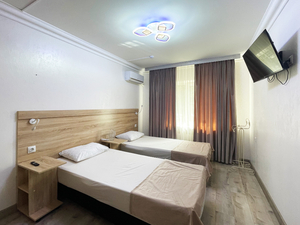 2-местный полулюкс (макс. 2+1 чел., 35 кв. м, телевизор, кондиционер, душ, фен, холодильник, балкон, 2-спальная кровать, шкаф, чайник). Доп. место - диван-кровать.