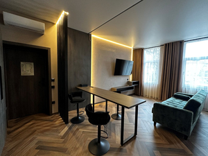 2-местный студио-делюкс (макс. 2+2 чел., 35 кв. м, Wi-Fi, телевизор, кондиционер, душ, фен, халаты, тапочки, микроволновая печь, сейф, 2-спальная кровать, мини-холодильник, мини-кухня, набор посуды, чайный набор). Доп. место - диван-кровать, представляется без ограничения по возрасту.