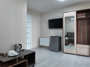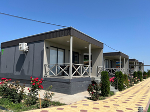 Сервис: Уборка номера раз в 3 дня, смена белья - раз в 3 дня, смена полотенец - раз в 3 дня2-местный домик (макс. 2+2 чел., 45 кв. м, телевизор, кондиционер, душ, фен, холодильник, веранда, шкаф, чайник, трансформируемые кровати (1-спальные / 2-спальная кровать)). Доп. место - диван-кровать.