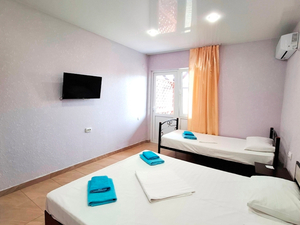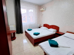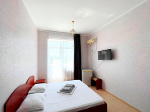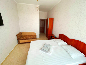 Сервис: Уборка номера ежедневно, смена белья - раз в 3 дня, смена полотенец - раз в 3 дня2-местный стандарт (макс. 2 чел., 18 кв. м, телевизор, сплит-система, душ, фен, холодильник, балкон, мебель на балконе, стул, 1-спальные/ 2-спальная кровать, журнальный столик, шкаф, туалет, туалетный столик).3-местный стандарт (макс. 3 чел., 18 кв. м, телевизор, сплит-система, душ, фен, холодильник, терраса, стул, 1-спальные/ 2-спальная кровать, журнальный столик, шкаф, туалет, туалетный столик).4-местный стандарт (макс. 4 чел., 22 кв. м, телевизор, сплит-система, душ, фен, холодильник, терраса, стул, 2-спальная кровать, 1-спальные кровати, журнальный столик, шкаф, туалет, туалетный столик).4-местный комфорт (макс. 4 чел., 36 кв. м, телевизор, сплит-система, душ, фен, холодильник, балкон, мебель на балконе, стул, журнальный столик, шкаф, туалет, туалетный столик, в качестве основных мест предоставляется: 2-спальная кровать и 2-спальный раскладной диван).5-местный 2-комнатный комфорт (макс. 5 чел., 36 кв. м, телевизор, сплит-система, душ, фен, холодильник, балкон, мебель на балконе, стул, журнальный столик, шкаф, туалет, туалетный столик, в качестве основных мест предоставляется: 2-спальная кровать, 2-спальный диван, 1-местное раскладное кресло-кровать).