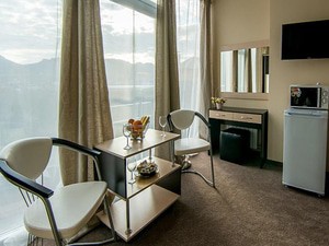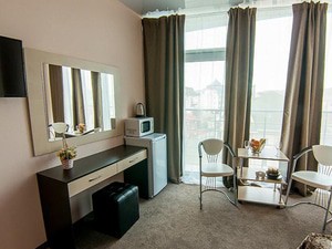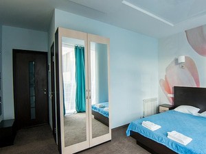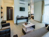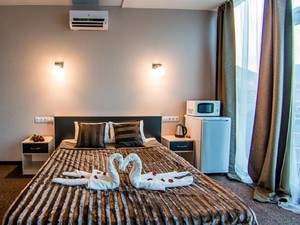 2-местный стандарт с балконом (без вида) (макс. 2+1 чел., 16 кв. м, телевизор, кондиционер, умывальник, фен, холодильник, балкон, сейф, прикроватные тумбочки, шкаф, душевая кабина, туалет, кровать KING-SIZE / раздвижная кровать BOX-SPRING, чайный набор посуды, туалетный столик, (номера на 1,2 или 3 этажах)). Доп. место - еврораскладушка, может быть установлена без ограничения по возрасту.2-местный стандарт с раздельными кроватями (без вида) (макс. 2+2 чел., 20 кв. м, телевизор, кондиционер, умывальник, фен, холодильник, сейф, прикроватные тумбочки, шкаф, душевая кабина, туалет, чайный набор посуды, туалетный столик, раздвижная кровать BOX-SPRING, (номера без балкона на 3 этаже )). Доп. место - еврораскладушка, может быть установлена без ограничения по возрасту.2-местный комфорт (без вида) (макс. 2+1 чел., 15 кв. м, телевизор, кондиционер, умывальник, фен, холодильник, сейф, прикроватные тумбочки, шкаф, душевая кабина, туалет, кровать KING-SIZE / раздвижная кровать BOX-SPRING, чайный набор посуды, туалетный столик, (номера без балкона на 1,2,3 или 4 этажах)). Доп. место - еврораскладушка, может быть установлена без ограничения по возрасту.2-местный 2-комнатный полулюкс с террасой (2 этаж) (макс. 2+2 чел., 40 кв. м, телевизор, кондиционер, умывальник, фен, холодильник, терраса, микроволновая печь, сейф, кресло, прикроватные тумбочки, шкаф, душевая кабина, туалет, 2-спальная кровать "king-size", чайный набор посуды, туалетный столик, напольная вешалка, кресло-стул, пуф, (номер с видом на окрестности), возможно установить третье доп.место (еврораскладушка), по согласованию с отелем). Доп. место - раскладной диван, предоставляется без ограничения по возрасту.2-местный 1-комнатный полулюкс с террасой (3 этаж) (макс. 2+2 чел., 21 кв. м, телевизор, кондиционер, умывальник, фен, холодильник, терраса, микроволновая печь, сейф, кресло, прикроватные тумбочки, журнальный столик, шкаф, душевая кабина, туалет, 2-спальная кровать "king-size", чайный набор посуды, туалетный столик, пуф, (номер с видом на море и горы), возможно установить третье доп.место (еврораскладушка), по согласованию с отелем.). Доп. место - раскладной диван, может быть установлена без ограничения по возрасту.2-местный 2-комнатный полулюкс с террасой (4 этаж) (макс. 2+2 чел., 40 кв. м, телевизор, кондиционер, умывальник, фен, холодильник, терраса, микроволновая печь, сейф, рабочий стол, кресло, прикроватные тумбочки, журнальный столик, шкаф, вешалка для одежды, душевая кабина, багажница, туалет, 2-спальная кровать "king-size", чайный набор посуды, туалетный столик, кресло-стул, пуф, (номер с видом на море и горы), возможно установить третье доп.место (еврораскладушка), по согласованию с отелем). Доп. место - раскладной диван, может быть установлена без ограничения по возрасту.2-местный стандарт с балконом (вид на горы) (макс. 2+1 чел., 15 кв. м, телевизор, кондиционер, умывальник, фен, холодильник, балкон, микроволновая печь, сейф, прикроватные тумбочки, шкаф, душевая кабина, туалет, кровать KING-SIZE / раздвижная кровать BOX-SPRING, чайный набор посуды, туалетный столик, (номера на 3 и 4 этажах)). Доп. место - еврораскладушка, может быть установлена без ограничения по возрасту.2-местный комфорт (вид на горы) (макс. 2+1 чел., 15 кв. м, телевизор, кондиционер, умывальник, фен, холодильник, сейф, прикроватная тумбочка, шкаф, душевая кабина, туалет, 2-спальная кровать "king-size", чайный набор посуды, туалетный столик, (номера без балкона на 
