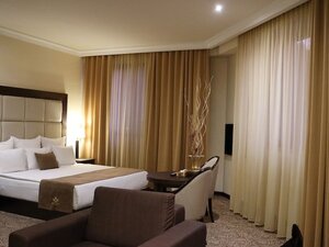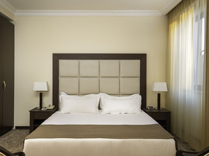 Сервис: Уборка номера ежедневно, смена белья - через день, смена полотенец - ежедневно2-местный Deluxe (макс. 2+1 чел., 30 кв. м, Wi-Fi бесплатный в номере, телевизор, кондиционер, душ/ванна, фен, халаты, тапочки, мини-бар, сейф, гладильная доска, 1-спальные/ 2-спальная кровать, чайник, туалет). Доп. место - раскладушка, предоставляется без ограничений по возрасту.2-местный Superior deluxe (макс. 2+1 чел., 37 кв. м, Wi-Fi бесплатный в номере, телевизор, кондиционер, душ/ванна, фен, халаты, тапочки, мини-бар, сейф, телефон, гладильная доска, 1-спальные/ 2-спальная кровать, чайник, туалет). Доп. место - раскладушка, предоставляется без ограничений по возрасту.2-местный Corner studio (макс. 2+1 чел., 40 кв. м, Wi-Fi бесплатный в номере, телевизор, кондиционер, фен, халаты, тапочки, мини-бар, сейф, гладильная доска, 2-спальная кровать, душевая кабина, туалет, чайный набор). Доп. место - диван, предоставляется без ограничений по возрасту.2-местный Junior suite (макс. 2+1 чел., 47 кв. м, Wi-Fi бесплатный в номере, телевизор, кондиционер, душ, душ/ванна, фен, халаты, тапочки, мини-бар, сейф, телефон, утюг, гладильная доска, 2-спальная кровать, чайник, туалет). Доп. место - диван, предоставляется без ограничений по возрасту.2-местный 2-комнатный Senior suite (макс. 2+1 чел., 80 кв. м, Wi-Fi бесплатный в номере, телевизор, кондиционер, душ/ванна, фен, халаты, тапочки, мини-бар, сейф, утюг, гладильная доска, 2-спальная кровать, чайник, туалет). Доп. место - диван, предоставляется без ограничений по возрасту.2-местный 2-комнатный Presidential Suite (макс. 2+1 чел., 100 кв. м, Wi-Fi бесплатный в номере, телевизор, DVD-проигрыватель, кондиционер, ванна, биде, фен, халаты, тапочки, мини-бар, сейф, гладильная доска, 2-спальная кровать, чайник, душевая кабина, туалет). Доп. место - диван, предоставляется без ограничений по возрасту.2-местный senior (макс. 2 чел., 80 кв. м, Wi-Fi, телевизор, кондиционер, душ/ванна, тапочки, 2-спальная кровать, халат).2-местный corner (макс. 2 чел., 40 кв. м, Wi-Fi, телевизор, кондиционер, душ, тапочки, 2-спальная кровать, халат).2-местный Deluxe DBL (макс. 2 чел., 30 кв. м, Wi-Fi, телевизор, кондиционер, душ/ванна, халаты, тапочки, 2-спальная кровать).2-местный Deluxe Twin (макс. 2 чел., 30 кв. м, Wi-Fi, телевизор, кондиционер, душ/ванна, халаты, тапочки, 1-спальные кровати).2-местный superior deluxe дабл (макс. 2 чел., 37 кв. м, Wi-Fi, телевизор, кондиционер, душ/ванна, халаты, тапочки, 2-спальная кровать).2-местный superior deluxe twin (макс. 2 чел., 37 кв. м, Wi-Fi, телевизор, кондиционер, душ/ванна, халаты, тапочки, 1-спальные кровати).2-местный люкс Presidential (макс. 2 чел., 100 кв. м, Wi-Fi, кондиционер, ванна, халаты, тапочки, 2-спальная кровать, душевая кабина).2-местный 1-комнатный standart (макс. 2+1 чел.).1-местный standart (макс. 1+1 чел., 25 кв. м, Wi-Fi, телевизор, душ/ванна, фен, тапочки, банные принадлежности, туалет).2-местный standart (макс. 2+1 чел., 30 кв. м, Wi-Fi, телевизор, душ/ванна, тапочки, банные принадлежности, сейф, туалет).