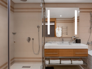 2-местный стандарт double (макс. 2+1 чел., 30 кв. м, ЖК телевизор, сплит-система, душ, фен, халаты, тапочки, холодильник, мини-бар, сейф, телефон, 1-спальные кровати, чайник, французский балкон, чайный набор). Доп. место - кресло-кровать, может быть установлено без ограничения по возрасту.