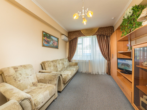 2-местный 1-комнатный повышенной комфортности (макс. 2+2 чел., телевизор, кондиционер, холодильник, балкон, электрочайник, сейф, 2-спальная кровать, санузел, посуда). Доп. место - раскладной диван, может быть установлен без ограничения по возрасту.