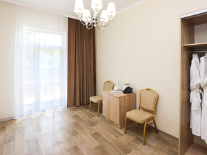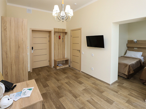 Размещение: Корпус №1 (главный) - 4-этажный (с лифтом); три коттеджа (корпус №2 - 2-этажный (40 номеров), два 1-этажных коттеджа (в одном - 2 номера, в другом - 3 номера). Столовая и лечебные кабинеты расположены в главном корпусе.