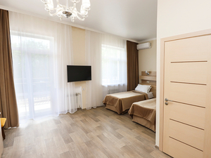 2-местный улучшенный в коттедже (макс. 2+1 чел., 19 кв. м, телевизор, кондиционер, душ, умывальник, холодильник, электрочайник, 2-спальная кровать, прихожая, туалет, номер на первом этаже).2-местный 2-комнатный в коттедже (макс. 2+2 чел., 25 кв. м, телевизор, кондиционер, душ, умывальник, холодильник, электрочайник, 2-спальная кровать, туалет).