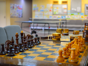 - киноконцертный зал, шахматы (шахматные столы), шашки