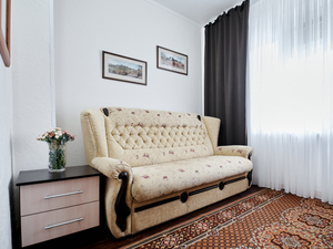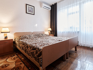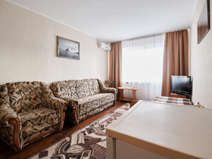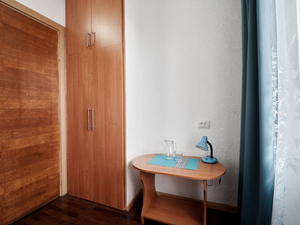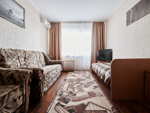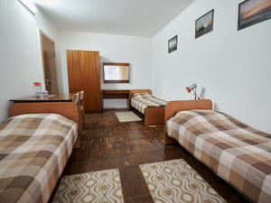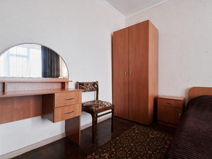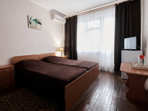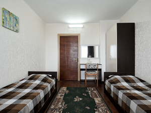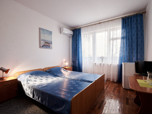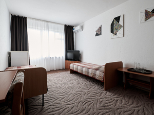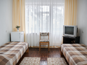 Сервис: Уборка номера раз в 2 дня, смена белья - раз в неделю, смена полотенец - раз в неделю1-местный стандарт (макс. 1 чел., 9 кв. м, телевизор, кондиционер, душ, холодильник, балкон, стул, 1-спальная кровать, шкаф, санузел, в номере 1 основное место (кровать или диван), детскую кроватку возможно установить не во все номера).2-местный (2+3) эконом в блоке (макс. 2+1 чел., 12-18 кв. м, телевизор, вентилятор, холодильник, балкон, 1-спальные кровати, шкаф, стулья, на блок - умывальник, душ с холодной водой и туалет; душ с горячей водой – в душевых на 1 этаже; вид во двор). Доп. место - раскладушка.3-местный (3+2) эконом в блоке (макс. 3+1 чел., 14 кв. м, телевизор, вентилятор, холодильник, балкон, 1-спальные кровати, шкаф, стулья, на блок - умывальник, душ с холодной водой и туалет; душ с горячей водой – в душевых на 1 этаже; вид во двор). Доп. место - раскладушка.2-местный стандарт (макс. 2 чел., 14 кв. м, телевизор, кондиционер, душ, холодильник, балкон, стул, 1-спальные кровати, шкаф, санузел, по одному номеру на каждом этаже).3-местный 2-комнатный стандарт (макс. 3+1 чел., 18 кв. м, телевизор, кондиционер, душ, холодильник, 2 балкона, 1-спальная кровать, 1-спальные/ 2-спальная кровать, шкаф, стулья, санузел). Доп. место - раскладушка, только для детей до 10 лет (включительно).5-местный 2-комнатный стандарт улучшенный (макс. 5+1 чел., 30 кв. м, телевизор, кондиционер, душ, холодильник, 2 балкона, 1-спальные/ 2-спальная кровать, шкаф, стулья, санузел, 1-спальные или 2-спальные кровати, вид во двор). Доп. место - раскладушка/диван, только для детей до 10 лет (включительно).3-местный 2-комнатный комфорт (макс. 3+1 чел., 34 кв. м, телевизор, кондиционер, душ, холодильник, 2 балкона, лоджия, электрочайник, 1-спальные/ 2-спальная кровать, шкаф, стулья, санузел, вид во двор). Доп. место - диван, только для детей до 10 лет (включительно).