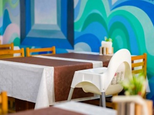 Услуги для детей: детская площадка. Бесплатно: детская анимация, детская игровая комната без воспитателя, стульчики для кормления. Платно: детская кроватка