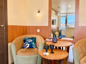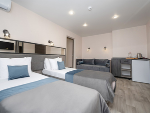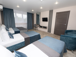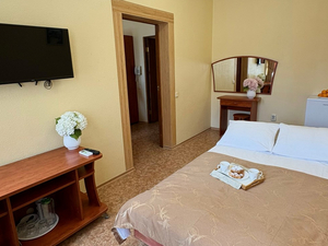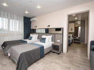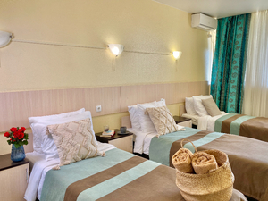 2-местный 1-комнатный без балкона (макс. 2+1 чел., 20 кв. м, Wi-Fi, телевизор, кондиционер, душ, фен, холодильник, 1-спальные кровати, чайник, набор посуды). Доп. место - еврораскладушка.4-местный 1-комнатный семейный без балкона (макс. 4+1 чел., 23-25 кв. м, Wi-Fi, телевизор, кондиционер, душ/ванна, фен, холодильник, 1-спальные кровати, диван, чайник, туалет, чайный набор, основные места: две 1-спальные кровати + диван). Доп. место - еврораскладушка.4-местный 2-комнатный полулюкс без балкона (макс. 4+1 чел., 40 кв. м, Wi-Fi, телевизор, кондиционер, душ/ванна, фен, халаты, тапочки, холодильник, сейф, мягкая мебель, 1-спальные/ 2-спальная кровать, чайник, набор посуды, туалет, основные места: 2-спальная кровать и раскладной диван). Доп. место - еврораскладушка.5-местный 2-комнатный люкс семейный без балкона (макс. 5+1 чел., 50 кв. м, Wi-Fi, телевизор, кондиционер, душ/ванна, фен, халаты, тапочки, холодильник, сейф, 2-спальная кровать, 1-спальные кровати, диван, чайник, набор посуды, основные места: две 1-спальные кровати + 2-спальная кровать + раскладной диван). Доп. место - диван.4-местный 2-комнатный люкс без балкона (макс. 4+1 чел., 40-42 кв. м, Wi-Fi, телевизор, кондиционер, душ/ванна, фен, халаты, тапочки, холодильник, сейф, 1-спальные/ 2-спальная кровать, диван, чайник, набор посуды, туалет, основные места: 2-спальная кровать/ две 1-спальные кровати + раскладной диван). Доп. место - еврораскладушка. - Пляж