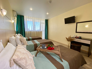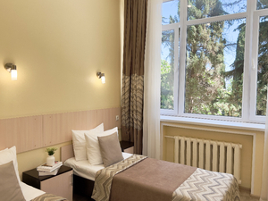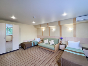 2-местный 1-комнатный без балкона (макс. 2+1 чел., 18 кв. м, Wi-Fi, телевизор, кондиционер, душ/ванна, фен, холодильник, 1-спальные кровати, чайник, набор посуды, туалет). Доп. место - еврораскладушка.4-местный 2-комнатный люкс без балкона (макс. 4+1 чел., 36-42 кв. м, Wi-Fi, телевизор, кондиционер, душ/ванна, фен, халаты, тапочки, холодильник, сейф, мягкая мебель, 1-спальные/ 2-спальная кровать, чайник, набор посуды, туалет, основные места: 2-спальная кровать/ две 1-спальные кровати и раскладной диван). Доп. место - еврораскладушка.4-местный 2-комнатный полулюкс без балкона (макс. 4+1 чел., 26-33 кв. м, Wi-Fi, телевизор, кондиционер, душ/ванна, фен, халаты, тапочки, холодильник, сейф, 1-спальные кровати, диван, чайник, набор посуды, туалет, основные места: две 1-спальные кровати/2-спальная кровать + раскладной диван). Доп. место - еврораскладушка.Корпус №3 "Вилла"