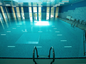 - крытый бассейн (с подогревом, размер 12,5*12,5 м, глубина 1,5-2 м), открытый бассейн, шезлонги у бассейна