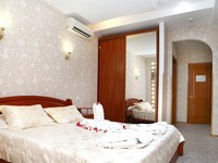Сервис: Уборка номера ежедневно, смена белья - раз в 3 дня, смена полотенец - ежедневно2-местный 1-комнатный стандарт (макс. 2+1 чел., 20 кв. м, телевизор, душ, фен, балкон, сейф, 1-спальные кровати, тумбочки, шкаф, туалет). Доп. место - кресло-кровать, предоставляется без ограничений по возрасту.2-местный 1-комнатный стандарт light (макс. 2+1 чел., 25 кв. м, телевизор, душ, фен, балкон, сейф, 1-спальные/ 2-спальная кровать, тумбочки, шкаф, туалет). Доп. место - еврораскладушка, предоставляется без ограничений по возрасту.2-местный 1-комнатный полулюкс (макс. 2+1 чел., 30 кв. м, телевизор, душ, фен, балкон, сейф, 1-спальные/ 2-спальная кровать, тумбочки, шкаф, туалет). Доп. место - кресло-кровать, предоставляется без ограничений по возрасту.2-местный 2-комнатный люкс (макс. 2+1 чел., 50 кв. м, телевизор, душ, фен, балкон, мини-бар, сейф, 1-спальные кровати, тумбочки, шкаф, туалет). Доп. место - кресло-кровать, предоставляется без ограничений по возрасту.2-местный 2-комнатный апартамент (макс. 2+1 чел., 70 кв. м, телевизор, душ, фен, балкон, мини-бар, сейф, диван, тумбочки, шкаф, туалет). Доп. место - кресло-кровать, предоставляется без ограничений по возрасту.