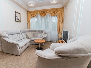 2-местный 3-комнатный люкс (макс. 2+2 чел., телевизор, кондиционер, душ, халаты, тапочки, холодильник, балкон, электрочайник, утюг, гладильная доска, 2-спальная кровать, диван, набор посуды, санузел).