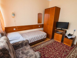 1-местный 1-комнатный (макс. 1 чел., 20 кв. м, телевизор, душ, холодильник, балкон (в части номеров), электрочайник, 1-спальная кровать, санузел).
