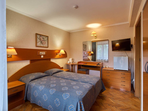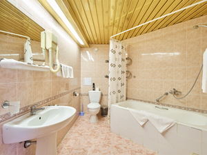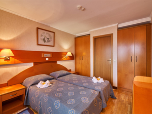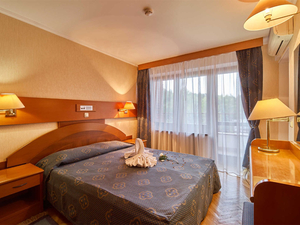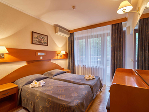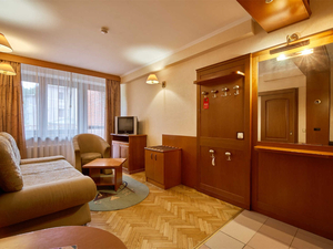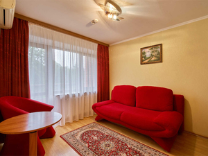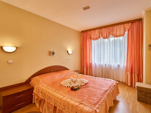 2-местный 2-комнатный полулюкс (макс. 2+2 чел., 24 кв. м, телевизор, кондиционер, ванна, фен, холодильник, балкон, электрочайник, телефон, мягкая мебель, 1-спальные/ 2-спальная кровать, тумбочки, шкаф, мини-кухня, набор посуды, туалетный столик). Доп. место - диван.