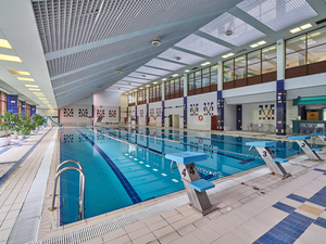 крытый бассейн (25 метровый плавательный бассейн :4 дорожки, стартовые тумбочки, две установки противотока, (глубина от 1,8 до 2,2 м), гидромассажный бассейн полукруглой формы диаметром 5 м (три водопада, гейзер, гидроджеты, температура воды 28-30 градусов), детская ванна полукруглой формы диаметром 6 м с горкой и водопадом «грибок»)