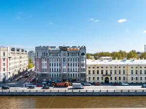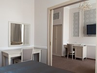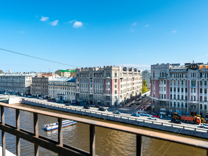 2-местный 2-комнатный люкс (макс. 2+1 чел., от 30 кв. м, Wi-Fi, спутниковое телевидение, кондиционер, фен, халаты, тапочки, туалетные принадлежности, мини-бар, телефон, шкаф/гардероб, 2-спальная кровать, туалет, окна выходят на набережную реки Фонтанки). Доп. место - еврораскладушка, предоставляется без ограничения по возрасту.