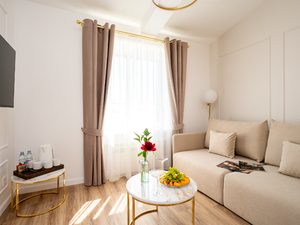 2-местный Love Suite/Apraksin Suite (макс. 2+1 чел., от 30 кв. м, Wi-Fi бесплатный в номере, телевизор, кондиционер, джакузи, фен, халаты, тапочки, туалетные принадлежности, мини-бар, телефон, мягкая мебель, рабочий стол, шкаф/гардероб, 2-спальная кровать, туалет). Доп. место - еврораскладушка, предоставляется без ограничения по возрасту.