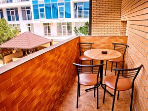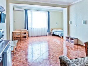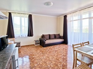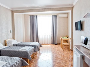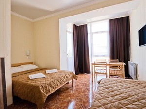 Сервис: Уборка номера ежедневно, смена белья - раз в 4 дня, смена полотенец - раз в 4 дня3-местный комфорт (макс. 3 чел., 17-20 кв. м, Wi-Fi, телевизор, кондиционер, душ, фен, холодильник, электрочайник, микроволновая печь, сейф, утюг, набор посуды, туалет, полотенца для бассейна, этаж 1-4; балкон (вид на море, горы и окрестности / на детскую площадку) или мини-балкон (вид на внутренний дворик с бассейном); одна 2-спальная кровать и две 1-спальных или три 1-спальных кровати).3-местный комфорт улучшенный (макс. 3 чел., 20 кв. м, Wi-Fi, телевизор, кондиционер, душ, фен, холодильник, терраса, электрочайник, микроволновая печь, сейф, утюг, набор посуды, туалет, полотенца для бассейна, этаж 2; одна 2-спальная кровать и одна 1-спальная кровать).4-местный комфорт (макс. 4 чел., 23-26 кв. м, Wi-Fi, телевизор, кондиционер, душ, фен, холодильник, электрочайник, микроволновая печь, сейф, утюг, набор посуды, туалет, полотенца для бассейна, этаж 1; одна 2-спальная кровать и две 1-спальных кровати).4-местный комфорт улучшенный (макс. 4 чел., 23-25 кв. м, Wi-Fi, телевизор, кондиционер, душ, фен, холодильник, балкон, электрочайник, микроволновая печь, сейф, утюг, набор посуды, туалет, полотенца для бассейна, этаж 2-4; одна 2-спальная кровать и один раскладной диван).6-местный семейный (макс. 6 чел., 33 кв. м, Wi-Fi, телевизор, кондиционер, душ, фен, холодильник, электрочайник, микроволновая печь, сейф, утюг, набор посуды, туалет, полотенца для бассейна, этаж 1; одна 2-спальная кровать и два раскладных дивана).