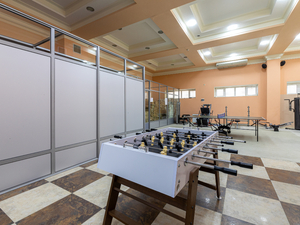 - Конференц-зал: Оборудование: флипчарт, микрофон, Проекционный экран, Магнитная доска