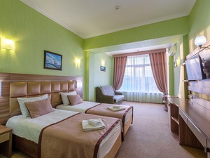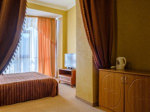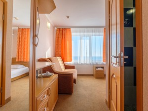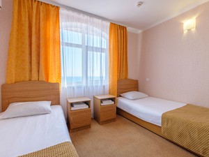Сервис: Уборка номера ежедневно, смена белья - раз в 3 дня1-местный стандарт (макс. 1+1 чел., 18 кв. м, телевизор, кондиционер, душ, фен, сейф, 1-спальная кровать, шкаф, чайник, туалет). Доп. место - диван, может быть установлен без ограничения по возрасту.2-местный эконом-стандарт (макс. 2+1 чел., 22 кв. м, телевизор, кондиционер, душ, фен, холодильник, сейф, 1-спальные кровати, чайник, туалет, вид на море, номера расположены на 4 этаже). Доп. место - 1,5-спальный раскладной диван/кресло-кровать.2-местный полулюкс (макс. 2+1 чел., 27 кв. м, телевизор, кондиционер, душ, фен, холодильник, сейф, 2-спальная кровать, чайник, туалет, вид на море). Доп. место - кресло-кровать, может быть установлено без ограничения по возрасту.2-местный панорамный полулюкс (макс. 2+1 чел., 27 кв. м, телевизор, кондиционер, душ, фен, холодильник, сейф, 2-спальная кровать, чайник, туалет). Доп. место - кресло-кровать, может быть установлено без ограничения по возрасту.2-местный люкс (макс. 2+2 чел., 40 кв. м, телевизор, кондиционер, душ, холодильник, балкон (в части номеров), сейф, 2-спальная кровать, туалет, между комнатами арка, межкомнатной двери нет). Доп. место - диван, может быть установлен без ограничения по возрасту.2-местный стандарт комфорт (макс. 2+1 чел., 25 кв. м, телевизор, кондиционер, душ, фен, холодильник, сейф, 1-спальные кровати, журнальный столик, шкаф, чайник, туалет). Доп. место - 1,5-спальный раскладной диван/кресло-кровать, может быть установлен без ограничения по возрасту.2-местный стандарт (макс. 2+1 чел., 25 кв. м, телевизор, кондиционер, душ, фен, холодильник, сейф, 1-спальные кровати, журнальный столик, шкаф, чайник, туалет). Доп. место - 1,5-спальный раскладной диван/кресло-кровать, может быть установлен без ограничения по возрасту.