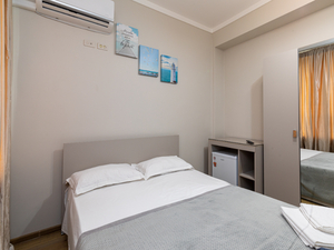 2-местный сьют, корп. 3 (макс. 2+1 чел., 46 кв. м, Wi-Fi, телевизор, кондиционер, ванна, фен, халаты, тапочки, холодильник, туалетные принадлежности, 2-спальная кровать, чайник, чайный набор). Доп. место - диван.
