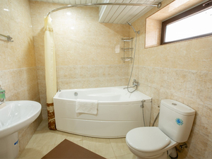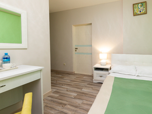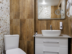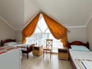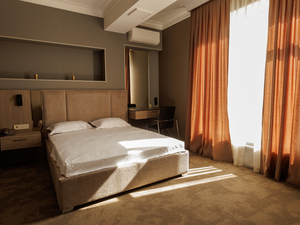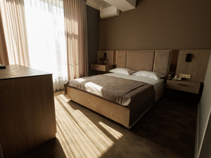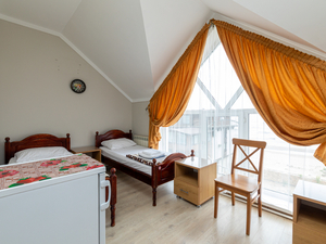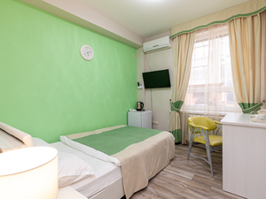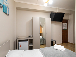 2-местный полулюкс, корп. 3 (макс. 2+1 чел., 29 кв. м, Wi-Fi, телевизор, кондиционер, ванна, фен, халаты, тапочки, холодильник, туалетные принадлежности, 2-спальная кровать, чайник, чайный набор). Доп. место - диван.