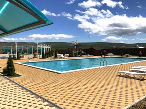 Два круглогодично работающих бассейна, баня, купель, беседки и очаг, закрытая территория, парковка для туристов. Трехразовое питание организовано в уютной столовой на территории. Номерной фонд представлен 2-местными и семейными номерами категорий стандарт и комфорт. В каждом номере - wi-fi, телевизор, кондиционер, ванная комната, набор полотенец, фен. Расположен в тихом месте на окраине поселка. Идеально подходит для бюджетных путешествий.