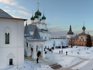 Посещение Ростовского кремля. Обнесённый мощными стенами с башнями, внешне он действительно напоминает кремль — древнерусскую княжескую крепость, но в действительности долгое время был Архиерейским двором — резиденцией ростовских епископов и митрополитов. резиденция ростовских епископов и митрополитов. Украшают кремль Успенский собор (XVI в.) с уникальной звонницей, на которой полностью сохранился набор из 15 колоколов, Архиерейский двор, Соборная площадь.